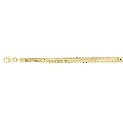 Triple Strand Italian Made Sterling Silver Necklace (Size 18 - 2 Ext) with Lobster Clasp in Yellow Gold Plated