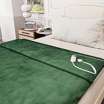 Electric Heated Double Layer Sherpa Blanket With 9 Heat Levels, Machine Washable and Timer (200x150 cm) - Green
