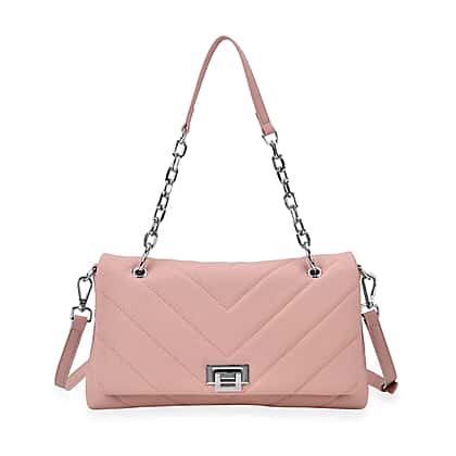 Turn heads effortlessly with this pink quilted chevron shoulder bag in genuine leather, offering a perfect mix of style and substance. The soft blush tone adds a feminine charm, while the sleek chain strap gives it an elevated, contemporary finish. Crafted with fine leather and lined in durable polyester, it includes two interior zipped pockets and an exterior zipped compartment for convenience. Whether you’re heading to lunch or an evening event, this bag adds polish to any outfit with its elegant structure and refined details.