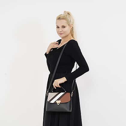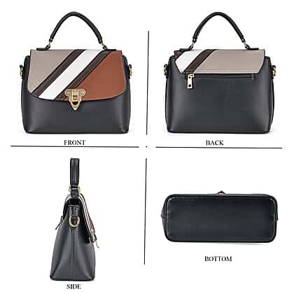 Elegant Patchwork Leatherette Crossbody Bag - Black