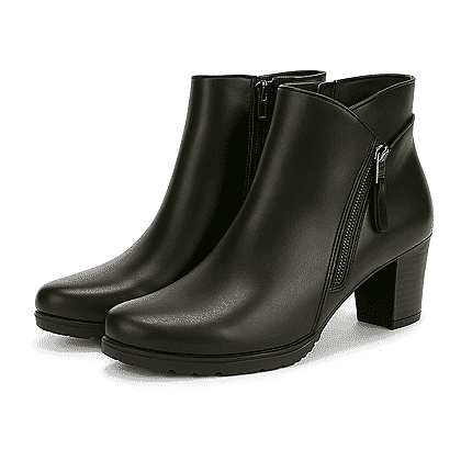 Step into timeless sophistication with the Emma AMY mid-heel ankle boots in black. Crafted from premium leather, these boots feature a smooth round toe and an elegant ankle-length shaft for a refined silhouette. The soft textile lining and cushioned insole provide lasting comfort, while the sturdy 5cm block heel adds just the right amount of height. Finished with an easy side zip fastening, these boots are perfect for everyday wear or smart occasions—pair effortlessly with jeans, skirts, or tailored trousers for a chic, polished look.