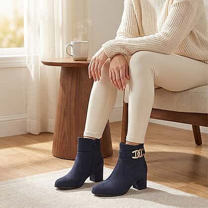 Bring effortless polish to your look with the Zelda suede-look ankle boot in navy, crafted for comfort and understated style. The soft microfibre suede finish and rich navy hue give it a refined edge, while the gold buckle detail adds a touch of sophistication. A mid-height block heel offers subtle lift without compromising comfort, making it ideal for everyday wear. Finished with a resin sole for grip and an inside zip for easy fitting, this boot transitions beautifully from daytime outings to evening plans.
