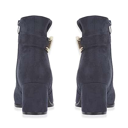 Bring effortless polish to your look with the Zelda suede-look ankle boot in navy, crafted for comfort and understated style. The soft microfibre suede finish and rich navy hue give it a refined edge, while the gold buckle detail adds a touch of sophistication. A mid-height block heel offers subtle lift without compromising comfort, making it ideal for everyday wear. Finished with a resin sole for grip and an inside zip for easy fitting, this boot transitions beautifully from daytime outings to evening plans.