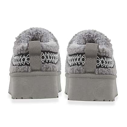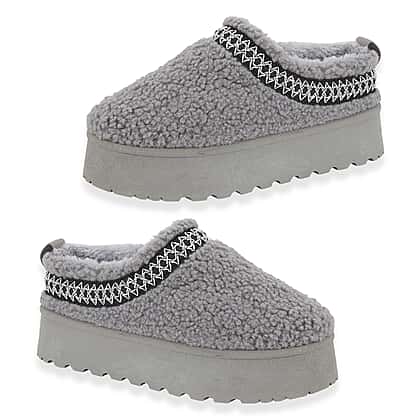 Step out in comfort with these soft and classy ladies shoes, a perfect fusion of warmth and support. Crafted with a soft and thick cushion sole, bringing luxury and comfort to every step. The classy slip-on design offers easy to wear throughout the day and adds a modern touch to any outfit. The inner lining offers gentleness and keeps you warm from morning to evenings. The decorative stitched design in white on grey colour adds a touch of intricate detailing making it more stylish and eye-catching.