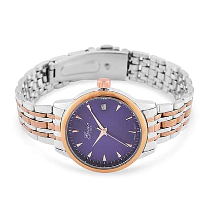 CLASSIC GENOA TIME V2 Miyota GM12 Japan Movt. 3ATM Water Resistant Blue Dial Watch with Silver and Rose Gold Colour Stainless Steel Strap