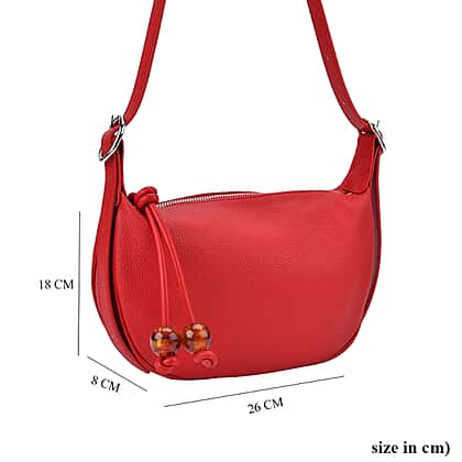 Step into timeless elegance with this genuine leather crossbody bag in red, designed for women who appreciate understated luxury. Its sleek silhouette, crafted from premium leather and lined with soft polyester, offers both sophistication and everyday ease. Featuring a secure metallic zip closure, the interior includes two zipped compartments for organisation, while an exterior zipped pocket provides quick access to essentials. Compact yet spacious enough for daily use, this piece effortlessly complements any outfit, from casual days to evening plans.