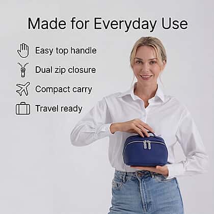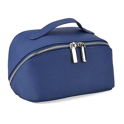 Genuine Leather Luxury Compact Cosmetic Travel Bag - Blue