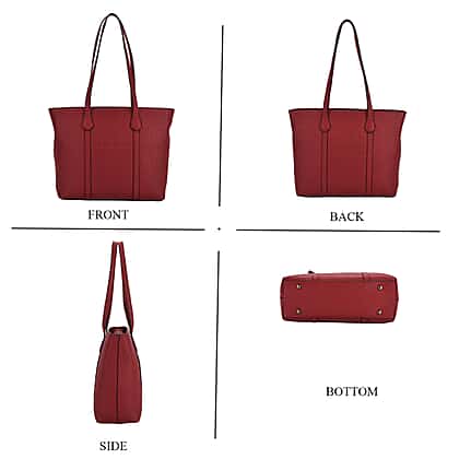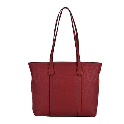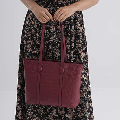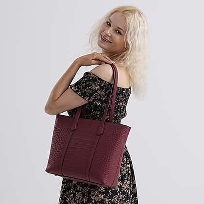 Genuine Leather Patterned Tote Bag (Size 38x12x27 cm) - Burgundy & Black