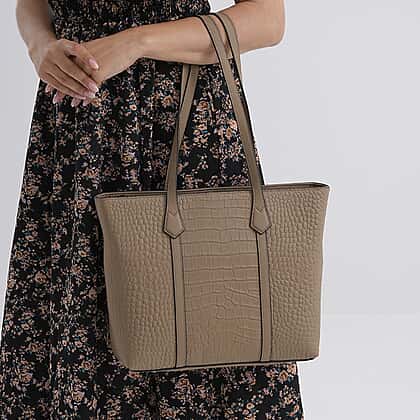 Genuine Leather Patterned Tote Bag (Size 38x12x27 cm) - Grey & Black