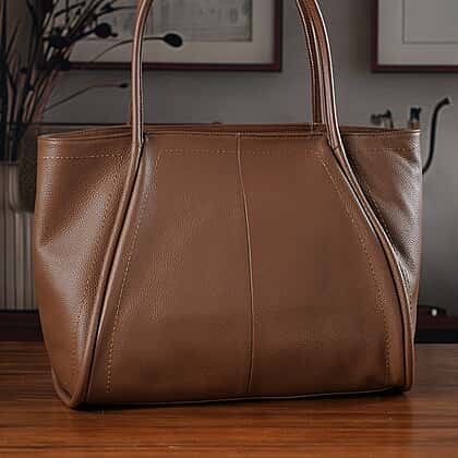 Genuine Leather Tote Bag- Brown