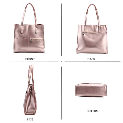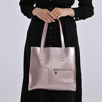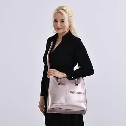 Sumptuous Quality 100% Genuine Leather LARGE Tote Bag with Shoulder Strap - Black - Pink