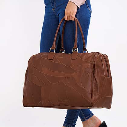 100% Genuine Leather DUFFLE Bag With Detachable Shoulder Strap - Brown (45x72x26cm)