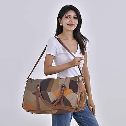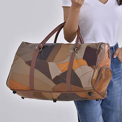 100% Genuine Leather Travel Duffle Bag (Size 51x23x28 cm) - Multi Color & Black