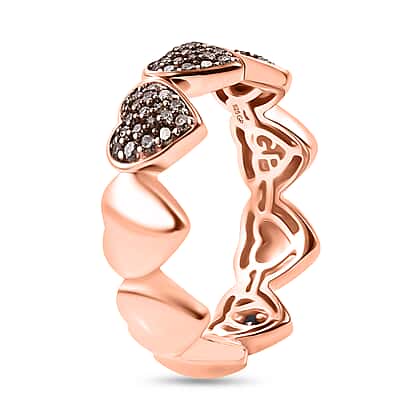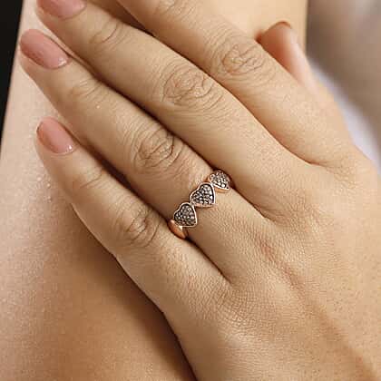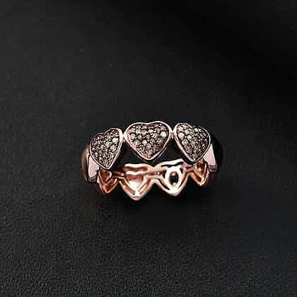 Indulge in timeless romance with this champagne diamond cluster heart band ring from the GP Collection. Designed with delicate heart motifs, each adorned with a cluster of warm champagne diamonds, this piece radiates sophistication and charm. The diamonds contrast beautifully against the 18K rose gold vermeil-plated sterling silver, exuding a soft, feminine glow. Hypoallergenic and tarnish-resistant, it offers lasting elegance and comfort. The contemporary band design makes it a perfect statement for everyday wear or a thoughtful gift for someone special.