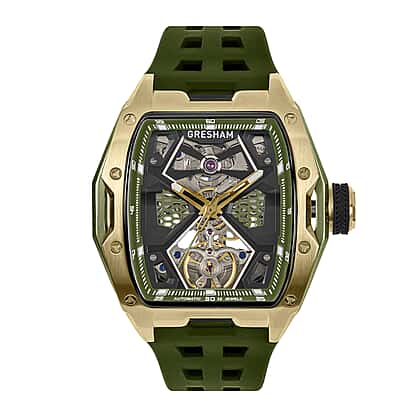 Gresham Genesis Automatic Skeleton Movement 5ATM Water Resistance Green Dial Mens Watch with Green Rubber Strap