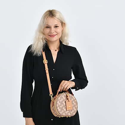 Guanchi Round Crossbody Bag with Top Handle - Brown