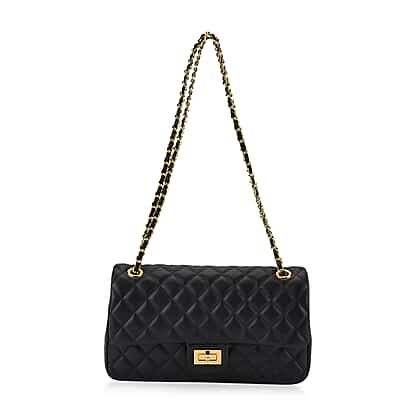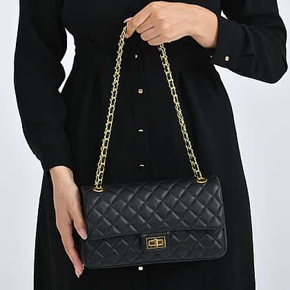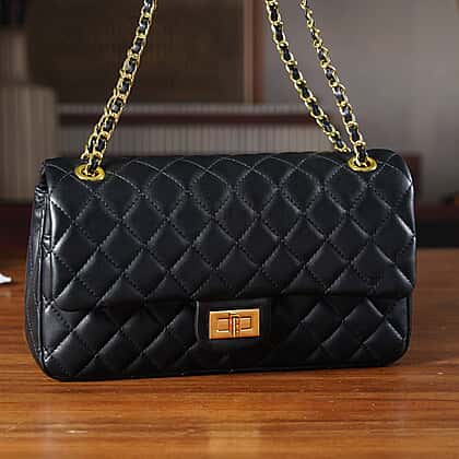 Guanchi Stylish Genuine Leather Crossbody Bag with Shoulder Chain Strap - Black