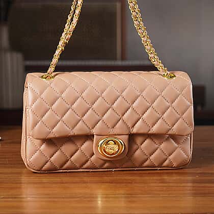 Crafted from genuine leather, this Guanchi crossbody bag combines style and class in one sleek design. The cappuccino coffee colour offers a warm and neutral tone, while the quilted pattern adds texture and beauty. Featuring a shoulder chain strap, this bag transitions easily from day to night and provides plenty of space for your essentials. The gold-tone clasp ensures a secure closure, making this bag both stylish and chic.