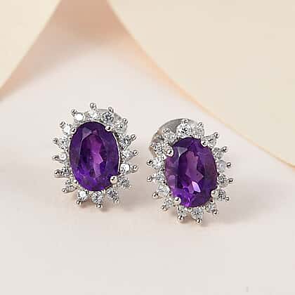 - STONE DETAILS: Oval faceted cut African Amethyst is surrounded by Natural Cambodian Zircon and both has been embellished onto these earrings through prongs