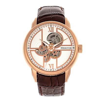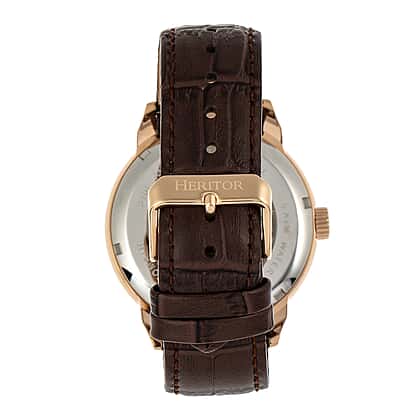Heritor Automatic Sanford White Analog Dial 5 ATM Mens Watch in Brown Genuine Leather Strap