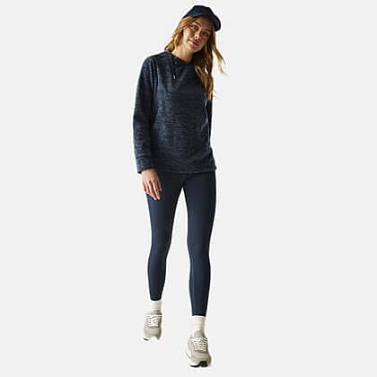 Choose understated style with the Regatta Mayse Women’s Fleece Hoody in navy, a versatile piece that works season after season. Designed in soft peached marl fabric, it offers lightweight warmth with a smooth, brushed finish that feels great against the skin. The hood, complete with cotton drawcords, brings relaxed practicality, while the curved hem adds subtle shaping. With recycled content in the blend, it’s a hoody that looks good and does good. Whether layered on breezy walks or worn indoors for easy comfort, this navy staple is the perfect everyday choice for relaxed dressing.