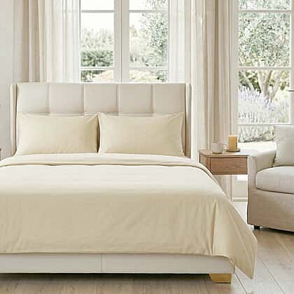 Hush Haven - Set of 4 Copper Infused Duvet Cover with 2 Pillowcases - Fitted Sheet (King) - Ivory
