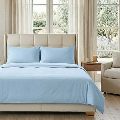 Hush Haven - Set of 4 Copper Infused Duvet Cover with 2 Pillowcases - Fitted Sheet (Double) - Sky Blue