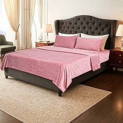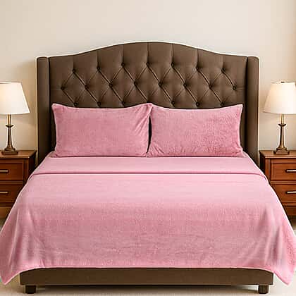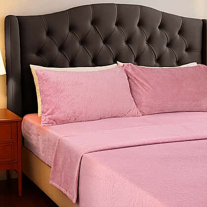Hush Haven 4 Piece Luxury Teddy Fleece Duvet Cover Set - Inc. 1 Duvet Cover, 1 Fitted Sheet with 2 Pillowcases (Double) - Pink