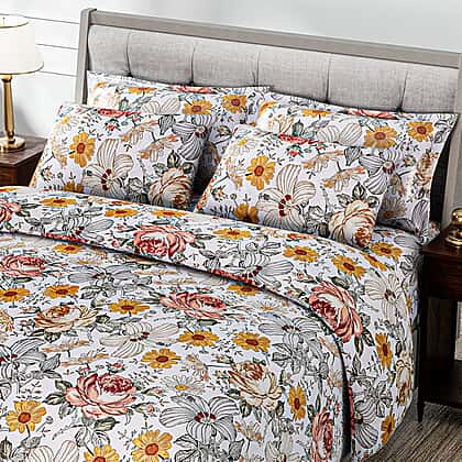 Displaying a floral-inspired duvet cover set that transforms your room, adding nature's beauty. This six-piece set includes one duvet cover, 1 fitted sheet, and 2 housewife pillowcases alongside 2 Oxford pillowcases in cream colour and in charming floral print design, adding brightness to your space. Crafted with premium fabric, each piece in this set ensures softness and coziness. Perfectly designed to make any home look brighter adding a burst of floral beauty and charm.