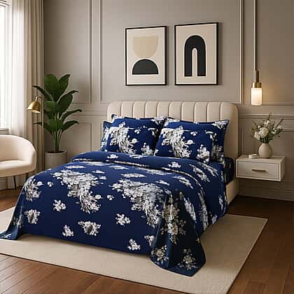 Bring nature's beauty to your bedroom with this Hush Haven 6-piece cover duvet cover set, a perfect fusion of floral-inspired design with sophistication. This set includes 1 duvet cover, 1 fitted sheet, 2 housewife pillowcases, alongside 2 Oxford pillowcases in navy colour. Made with high-quality material to offer comfort and style, this set is an ideal addition to enhance your home decor, adding a luxurious feel. Transform your space with this captivating duvet cover set for a peaceful environment and sleep.