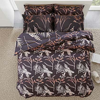 Hush Haven 6 Piece Botanical Digital Print Duvet Cover Set (King) - Brown