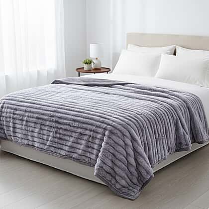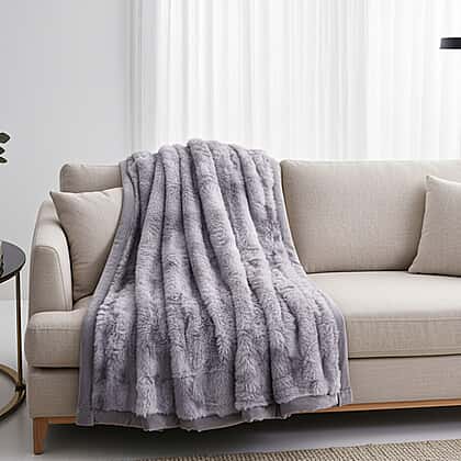 THE MOST LUXURIOUS BLANKET AT IW -- HUSH HAVEN Luxury Faux Fur Blanket with Border 600 GSM (150 x 200 cm) - Grey