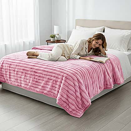 HUSH HAVEN Luxury Faux Fur Blanket with Border 600 GSM (150 x 200 cm) - Pink