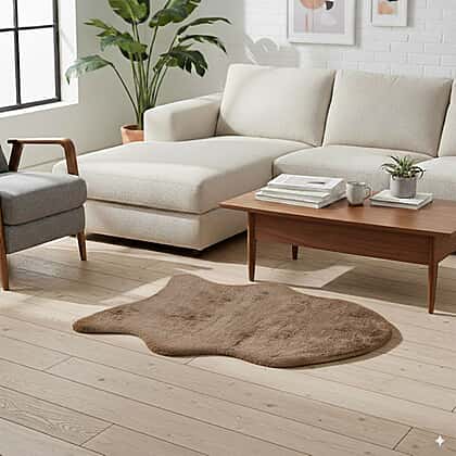 HUSH HAVEN Cosy Fish-Shaped Faux Fur Accent Rug (90 x 60 cm) - Beige