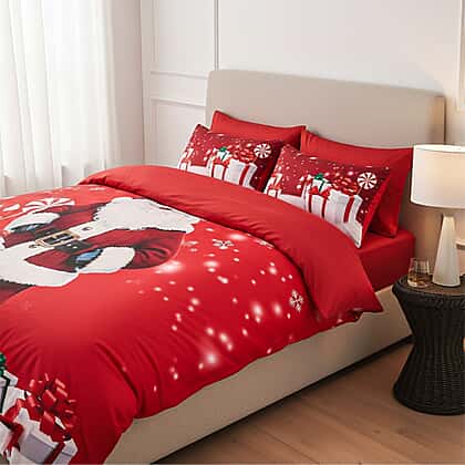 Santa Christmas Bedding Set - Duvet Cover - 2 Pillow Cases (200 x 200 cm) - Red