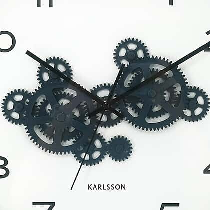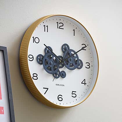 Present Time Open Gear Wall Clock - Ochre Yellow Rim with Dark Blue Gear Design