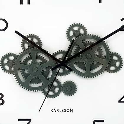 Present Time Open Gear Wall Clock - Misty Blue Rim with Jungle Green Gear Design