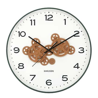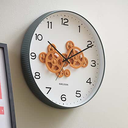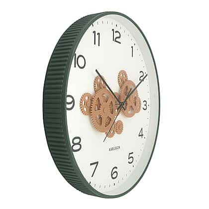 Present Time Open Gear Wall Clock - Jungle Green Rim with Ochre Yellow Gear Design