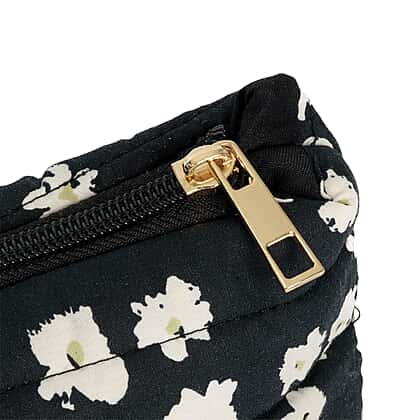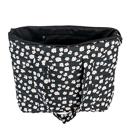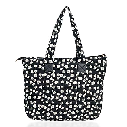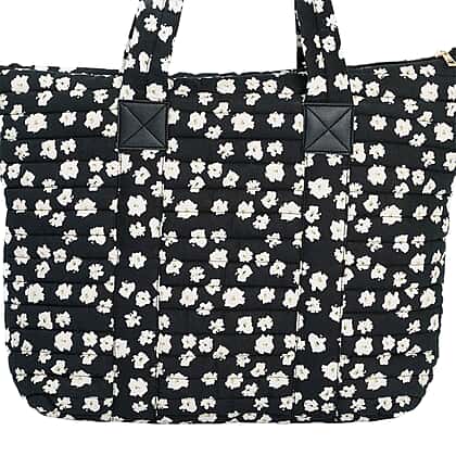 Coastal Quilted Floral Print Black Utility Tote Bag