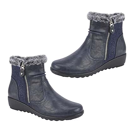 Jo - Joe Basil Ankle Boots With Side Zip Closure (Size 5) - Navy