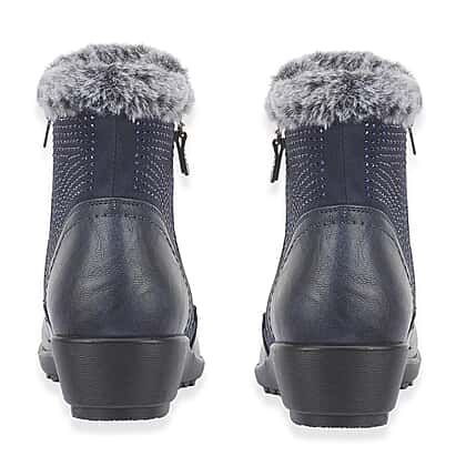 Jo - Joe Basil Ankle Boots With Side Zip Closure (Size 7) - Navy
