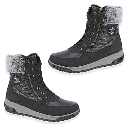 Jo - Joe Ladies Laced Boot With Zip And Fur Cuff (Size 6) - Black