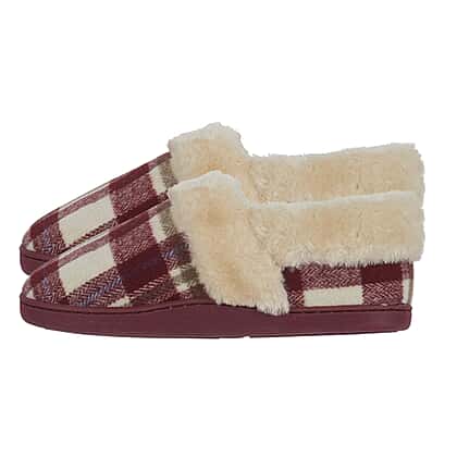 Jo - Joe Heritage Cosy Check Mule With Faux Fur Trim (Size 4) - Cherry
