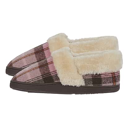 Step into comfort and style with the Jo & Joe Ladies Slipper in Blush. Designed with a soft, plush lining and a stylish plaid exterior, these slippers offer a warm and cosy experience for your feet. The slip-on style makes them easy to wear, while the cushioned insole ensures all-day comfort. Perfect for lounging at home, these slippers are ideal for unwinding after a long day. Whether you're relaxing or enjoying a quiet evening, these slippers bring both warmth and charm to your homewear collection.