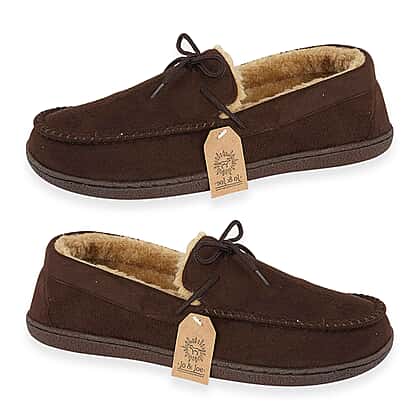 Jo - Joe Malcolm Mens Moccasins Faux-Fur Warm Soft Indoor Slip On Slippers (Size 8) - Brown