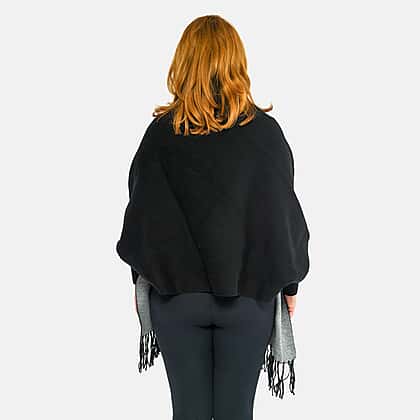 Kris Ana Women's Wrap with Tassel - Black and Grey