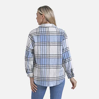 Refresh your wardrobe with the La Marey brushed checked shirt in cool blue tones. Made from 100% polyester, this piece combines warmth, softness, and durability for all-day comfort. Designed with a button closure, full sleeves, and a neatly shaped collar, it brings effortless style to casual dressing. The single chest pocket and curved hem enhance both function and femininity, making it perfect for layering over tops or wearing alone. Its fresh colour palette adds a touch of calm sophistication to your autumn and winter looks.
