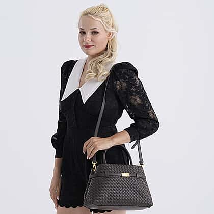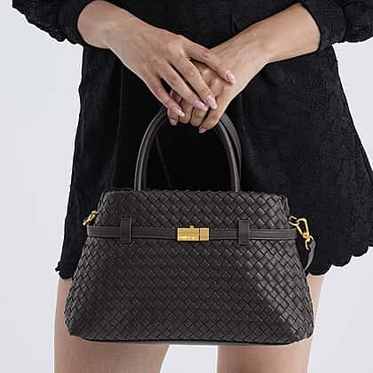 Bring a refined edge to your wardrobe with this La Marey woven pattern genuine leather crossbody bag in coffee. The rich tone and handwoven texture highlight the artistry of premium craftsmanship, while gold-tone accents add a touch of understated glamour. Designed with a structured silhouette, this bag transitions seamlessly from casual days to elegant evenings. The soft polyester-lined interior keeps belongings secure, complemented by zipped and slip pockets for easy organisation. Complete with a top handle and adjustable strap, it’s a perfect blend of style and practicality.