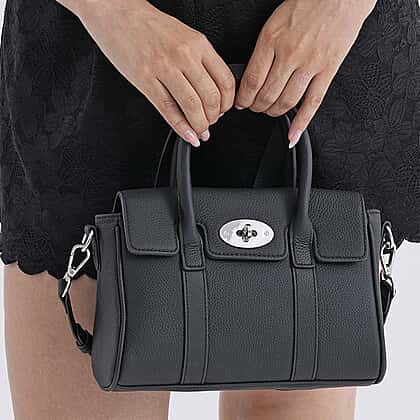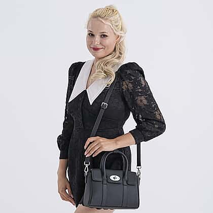 La Marey Genuine Leather Mini Bayswater Satchel Bag - Black