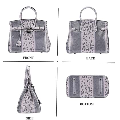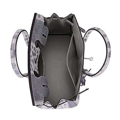 - Highlights a modern snakeskin design in soft grey tones